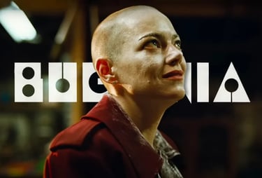 Cabe destacar que Bugonia no es una idea original de Yorgos, sino una versión de la película surcoreana Save the Green Planet!, y quizá por eso me parece la película más "normal" de este señor. Mi opinión sobre la peli está comprada, os lo digo ya. No puedo ser objetiva cuando hablamos de Emma Stone y Jesse Plemons; me gustan los dos más que a un tonto un lápiz. Son como Meryl Streep: no hacen nada mal. Si a eso añadimos lo surrealista de la trama (dos conspiranoicos creen que la CEO de una gran empresa farmacéutica es una extraterrestre y la secuestran para sonsacarle la verdad), tenemos una película, cuanto menos, decente.